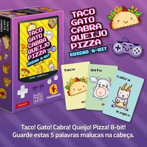 A dinâmica é simples e viciante: fale as palavras Taco, Gato, Cabra, Queijo, Pizza enquanto revela as cartas - se a palavra combinar com a carta, todos devem bater Nesta edição especial 8-bit, novas cartas temáticas com gestos exclusivos tornam tudo ainda mais divertido.