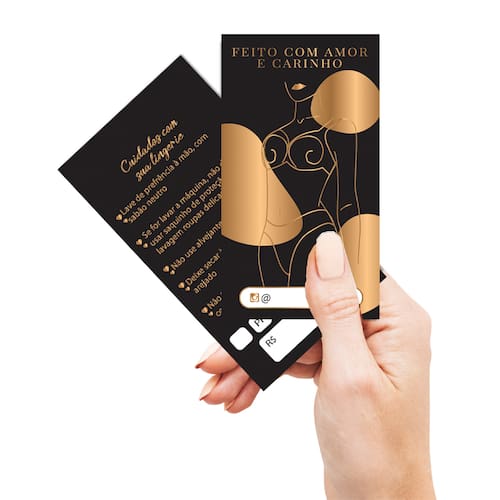Tag / Etiqueta Roupas Moda Lingerie 100unid - Lingerie | Variações - Cor: Preto e dourado
