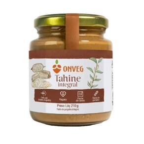 Tahine integral creme de gergelim onveg 210g Fonte de cálcio e fibras, o tahine integral creme de gergelim onveg é um alimento muito comum no oriente, servindo de ingrediente para homus de grão bico e o babaganoush de berinjela.