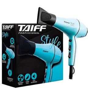 Características: Marca: Taiff Linha: Style Categoria: Secador de Cabelo Versão: Azul Benefícios: Secagem rápida, brilho intenso, leveza no manuseio, design ergonômico, potência profissional e proteção térmica para os fios. Ingredientes Principais: Não aplicável (produto eletrônico).