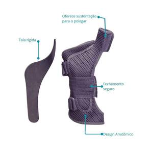 Tala punho e polegar comfort evolution chantal,desenvolvida para restringir os movimentos do punho e do polegar com eficácia e conforto.Com tecido respirável e forro interno macio, conta com tala anatômica que se adapta ao punho, proporcionando mais segurança e estabilidade ao longo do tratamento. Indicações: Limitar o movimento de flexão do punho e polegar, aliviar a dor e manter o posicionamento anatômico na prevenção e tratamento de doenças inflamatórias que afetam a região do punho e polegar. O tempo de utilização deverá ser orientado ao usuário/paciente por um da saúde. Características: Confeccionada em tecido respirável e forro interno para oferecer ao usuário sustentação e conforto. Possui duas talas, uma em plástico rígido posicionada na palma da mão que acompanha anatomia da região do punho e polegar, leve e resistente, que não resseca ou quebra com o passar do tempo, a outra tala é flexível, e fica posicionada no dorso da mão garantindo assim uma estabilização adequada. Desenvolvida com um sistema de ajuste que é composto por elástico e fecho de contato, permitindo um posicionamento correto. A ortese mantém os dedos livres ao mesmo tempo em que oferece sustentação para punho e polegar. Precauções: Não apertar demasiadamente. Como usar: 1. Medir a circunferência do punho com fita métrica para saber o tamanho correto. 2. Posicionar a tala acomodando na palma da mão e polegar. 3. Ajustar o elástico central no punho e aderir ao fecho de contato, de forma que a tala fique firme no punho para que a imobilização seja eficiente. Armazenagem e transporte: Manter em temperatura ambiente,em local fresco e seco. Produto lavável. Composição: 100% poliéster. Prazo de validade: Indeterminado.