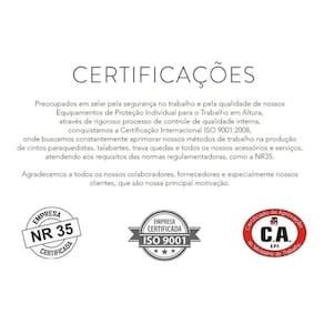 Possui 1 conector classe T confeccionado em aço com abertura de 16 3 mm e 1 mosquetão oval de trava de rosca com conector classe B confeccionado em aço com abertura de 19 3mm.