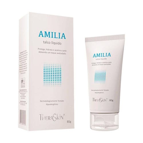 DescriçãoAmilia é um talco líquido da Theraskin que proporciona proteção e emoliência, deixando a pele macia, sedosa, hidratada e com toque aveludado. Uso tópico e pediátrico.Diminui a coceira local, a vermelhidão e o desconforto causados pelas brotoejas, depilação e irritações da pele. Seu uso diário em qualquer área corporal proporcional refrescância e suavidade à pele.Benefícios: Amilia é um talco líquido calmante e hidratante. Não deixa a superfície da pele branca. Confere agradável toque sedoso e sensação de frescor. Também indicado para pele sensível e delicada. Dermatologicamente testado. Hipoalergênico. Possui bisabolol, que é um agente que possui ação calmante, cicatrizante e antisséptica. Oferece atividade adstringente e secativa por meio do Kaolin, um ingrediente presente em sua formulação.Modo de Usar:Aplicar sobre a área desejada 2 a 3 vezes ao dia.A MarcaAssim é a Theraskin: já são 80 anos de atuação com profissionais comprometidos em desenvolver produtos de qualidade inovadores e com fórmulas eficazes e seguras. Tudo para proporcionar Harmonia na Pele. Ean: 7897129301759