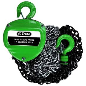 Talha Manual 1 Tonelada 1000 Kg Com Corrente 5 Metros Trato A Talha Manual TTM150 da Trato é perfeito para quem busca qualidade e resistência em um único produto.