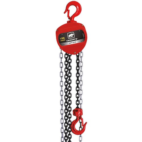 Talha Manual Corrente 1 Tonelada Elevação 5 metros GRT5100 1T CERONTE A Talha Manual de Corrente GRT5100 da Ceronte possui capacidade de 1 tonelada e elevação de até 5 metros, ideal para levantamento seguro e preciso de cargas pesadas em ambientes industriais e oficinas.