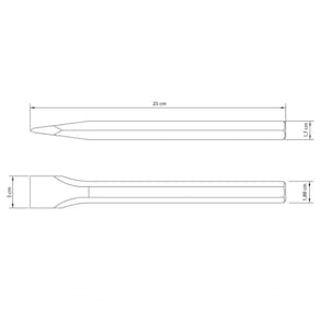 Modo de uso: Use óculos, luvas e outros equipamentos de proteção de acordo com a tarefa a ser executada. Utilize talhadeiras e ponteiros em superfícies ou componentes de dureza inferior a suas arestas de corte ou pontas. Descarte qualquer talhadeira ou ponteiro que apresente rachaduras, sinais de uso excessivo ou que tenham a face de impacto deformada. Golpeie as talhadeiras e ponteiros perpendicularmente às faces de impacto. Armazene em local limpo e seco.