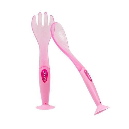 Talheres de Silicone com Ventosa Rosa - Clingo Com material macio e bordas arredondadas que não machucam a gengiva do bebê os talheres possuem cabo anatômico próprio para as mãozinhas dos bebês e ajudam as crianças a comerem sozinhas com facilidade e segurança.Características: - Pode ser lavado na Parte Superior da Lava Louças; - Livre de BPA; - Cabo Anatômico; - Possui Ponta de Silicone; - Imagens Meramente Ilustrativas.