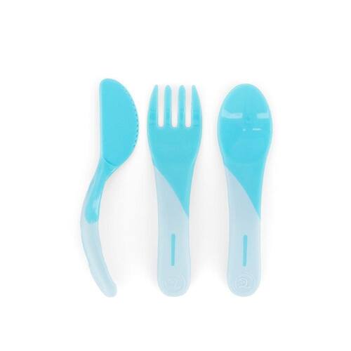 Talheres de Treinamento Azul Twistshake Talheres confortáveis, curtos e fáceis para o grande passo de começar a comer à mesa. Os Talheres de Treinamento da Twistshake têm cabos curtos, texturizados (aderentes) e ergonômicos, perfeitamente configurados para as mãozinhas das crianças. Todas as peças têm um rebordo útil na extremidade do cabo para evitar que escorreguem para dentro do recipiente. Com uma superfície de toque suave, proporciona uma sensação delicada e confortável na boca da criança. Tamanho: 20,7 x 12,3 x 2,9 cm (LxPxA) Material: Material de primeira classe - plástico PP e TPE. Livre de BPA. Idade recomendada: acima de 6 meses Higiene: Próprio para máquina de lavar louça na parte superior.