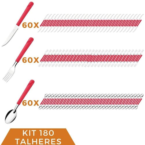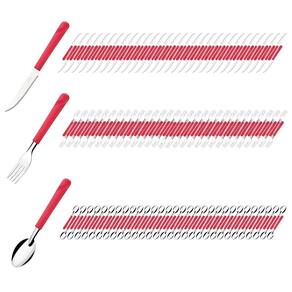 Talheres Faca Colher Garfo Aço Inox Vermelho Luna - 180 un