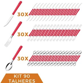 Talheres Faca Colher Garfo Aço Inox Vermelho Luna - 90 un
