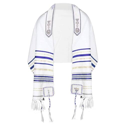 DESCRIÇÃO DO PRODUTO: Talit messiânico - de Israel medidas: 55 cm x 1,80 cm Tecido: acrilã - 100% poliéster. Cor: AZUL COM DOURADO Design de recurso principal: Cartas de Jesus soletradas nos 4 cantos Abençoe no Aatra parte superior : O Senhor te abençoe com ousadia para entrar no Santo dos Santos pelo Sangue de Yeshua HaMashiach 4 escrituras diferentes escritas em 4 cantos: Fp 2:9, Efésios 1:3, Romanos 8:38, João 14:6 Marca: Jerusalém