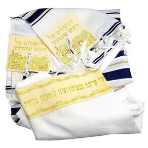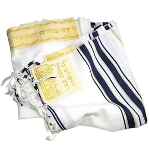 cor: azul e dourado. Segue com bolsa de transporte. O talit messiânico é uma colcha retangular com pincéis tsitzit e citações da bíblia localizadas em quatro cantos. No tempo de moisés, o talit era utilizado como roupa cotidiana, como uma capa ou capa. Tradicionalmente, lã ou linho era utilizado para a fabricação. De acordo com o mandamento: e ordene-lhes que os façam ao longo de suas gerações, nos cantos de suas vestes. . . Para que possam olhá-lo, lembrar-se de todos os mandamentos do senhor e cumpri-los números 15: 38-39 , pincéis especiais tsitsit foram costurados nas bordas, simbolizando 613 mandamentos. A oração na atarah do talit diz:
