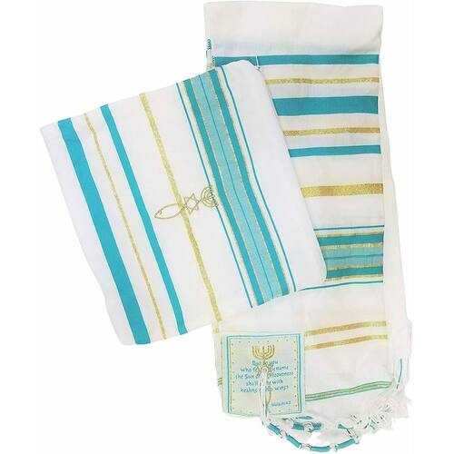 Descrição do produto: Talit messiânico - de israel medidas: 55 cm x 1,80 cm Tecido: acrilã - 100% poliéster. Cor: verde claro com dourado O talit messiânico é uma colcha retangular com pincéis tsitzit e citações da bíblia localizadas em quatro cantos. No tempo de moisés, o talit era como roupa cotidiana, como uma capa ou capa. Tradicionalmente, lã ou linho era para a fabricação. De acordo com o mandamento: e ordene-lhes que os façam ao longo de suas gerações, nos cantos de suas vestes ... Para que possam olhá-lo, lembrar-se de todos os mandamentos do senhor e cumpri-los números 15: 38-39 , pincéis especiais tsitsit foram costurados nas bordas, simbolizando 613 mandamentos. A brachá bênção contida na atarah do manto: A oração na atarah do talit diz: bendito és tu senhor nosso deus rei do mundo/universo, que nos preencheu toda a torá com jesus o messias e cobriu a todoos nós com a sua justiça. Atualmente, para a fabricação de talit, os tecidos sintéticos ou mistos são mais utilizados, pois são mais duráveis e fáceis de usar. O kit inclui uma bolsa especial para guardar o talit, com um símbolo bordado do messianismo.