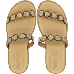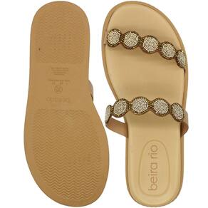 Tamanco Beira Rio Tiras Com Strass Palmilha Anatômica Feminino - 38 - Bege