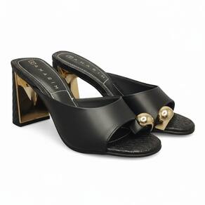 Seu salto bloco de aproximadamente 7,5 cm oferece a altura ideal para alongar a silhueta sem abrir mão da estabilidade e do conforto ao caminhar. O design de dedo à mostra confere leveza e feminilidade, deixando o visual mais delicado e sofisticado.