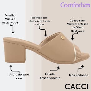 Delicado e essencial, o tamanco Comfortflex combina conforto e praticidade, oferecendo um visual elegante e leve para suas produções diárias. Os modelos trazem combinações variadas, desde opções mais sóbrias até aquelas com brilho e calce fácil, adaptando-se a diferentes estilos e ocasiões. A sola em PVC garante muita leveza, enquanto a taloneira com espuma dupla PU+EVA acomoda perfeitamente o pé, proporcionando um conforto incomparável. Com um salto forrado de 6cm, esse tamanco oferece o equilíbrio perfeito entre estilo e conforto. Aposte na elegância e no bem-estar com Comfortflex!