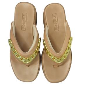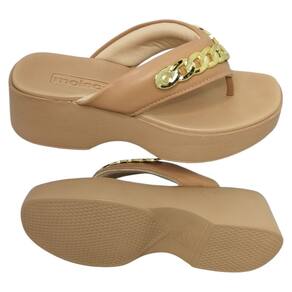 Tamanco Feminino De Dedo Moleca Corrente Conforto 5503.117 - 37 - Bege médio