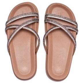 O tamanco Beira Rio combina elegância e conforto em um design estilo papete chinelo slide. Possui tiras resistentes decoradas com strass, proporcionando um toque de brilho e sofisticação ao calçado. O solado flat oferece leveza e conforto, ideal para o uso diário.