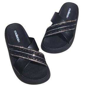 Tamanco Feminino Moleca Papete Tiras Cruzadas - 37 - Preto