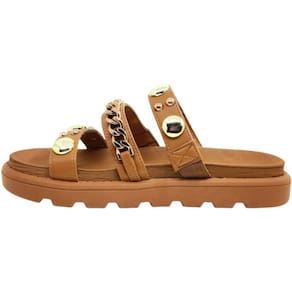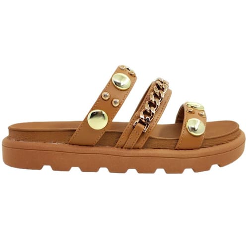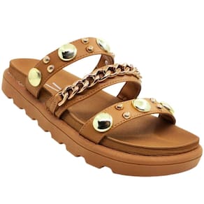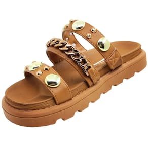 Confeccionada em material sintético de alta qualidade, garante maior durabilidade e resistência. Com seu design cuidadosamente elaborado, ideal para quem busca equilíbrio entre moda e praticidade. As tiras, abraçam o pé delicadamente, oferecendo um ajuste confortável, mas também adicionando uma dose extra de estilo ao visual. O destaque fica para as aplicações de adornos metalizados ao longo das tiras, conferindo um toque de brilho e muita personalidade.