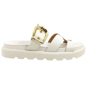 Confeccionada em material sintético de alta qualidade, garante maior durabilidade e resistência. Com seu design cuidadosamente elaborado, ideal para quem busca equilíbrio entre moda e praticidade. As tiras, abraçam o pé delicadamente, oferecendo um ajuste confortável, mas também adicionando uma dose extra de estilo ao visual. O destaque fica para a aplicação metalizadas que simula uma fivela presente na primeira tira do produto, conferindo um toque de brilho e muita personalidade.