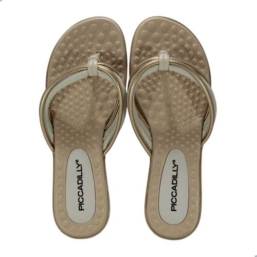 Tamanco Feminino Piccadilly Off White com Ouro - 36 - Amarelo Ouro