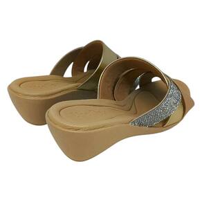 Design elegante e versátil: Com a as tiras decoradas tanto com strass quanto em dourado, garante um visual sofisticado, sendo ideal para qualquer ocasião, desde o trabalho até um passeio no final de semana.