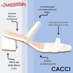 Confeccionado em material sintético de alta qualidade, o tamanco Mississipi é leve, possui um salto bloco com altura de 5,50 cm, proporcionando conforto durante todo o dia. Com um toque de sofisticação, este tamanco é uma adição elegante ao seu guarda-roupa!