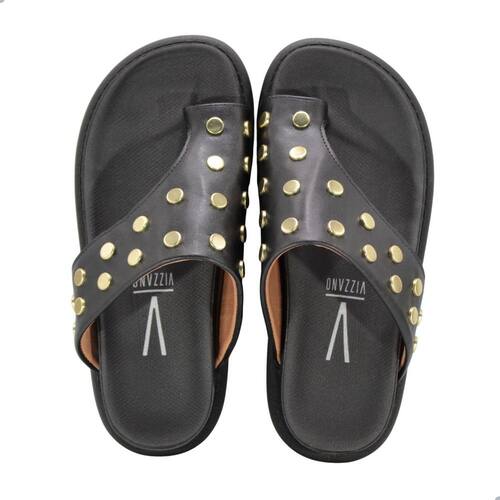 Flat Feminina Vizzano, confeccionada em material sintético, aplicações metalizadas, palmilha em EVA e solado de borracha. Essa sandália é moderna, prática e versátil. Ideal para compor looks casuais confortáveis e cheios de personalidade.