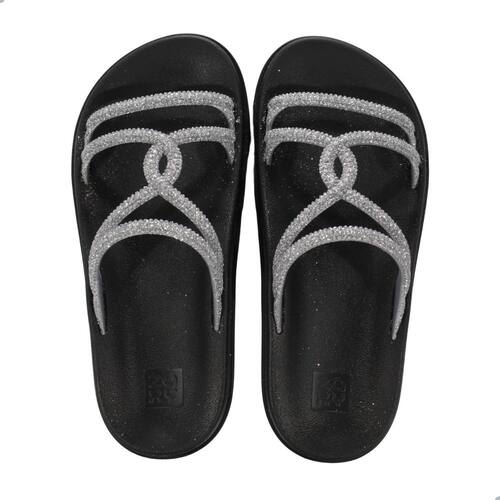 Tamanco Feminino Zaxy Bright Prata Claro e Preto - 33-34 - Prata