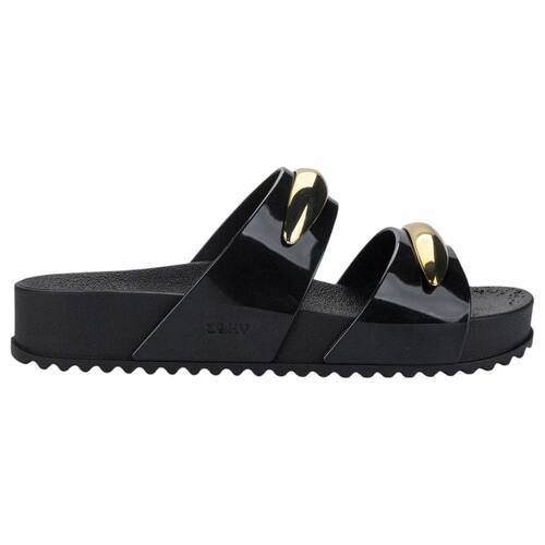 A nova Zaxy chega para reforçar a ascensão dos metais no universo dos calçados, trazendo um toque sofisticado e alinhado às tendências mais desejadas do momento. O destaque fica por conta do enfeite metalizado com efeito bold, inspirado nas joias contemporâneas. Com tiras amplas que abraçam os pés e uma sola confortável, essa novidade, uma aposta fashion que promete conquistar as mulheres conectadas às tendências!