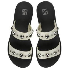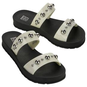 A Zaxy Rise encorpora a tendência Rebel através das calotas metalizadas! As tiras paralelas em acabamento glossy, dão um ar atemporal a esse slide anatômico, enquanto os studs em formato de calota aplicados no cabedal criam um toque de modernidade e ousadia!