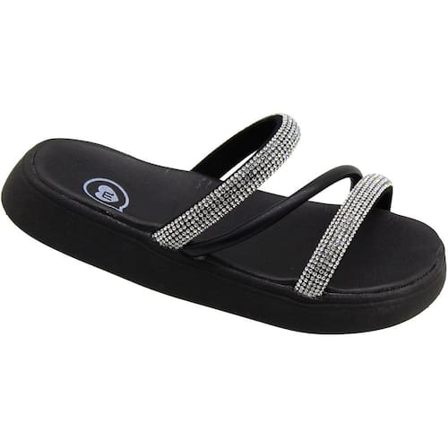 Tamanco Infantil Molekinha Plataforma Tiras Strass Napa Slide Menina - 32 - Preto