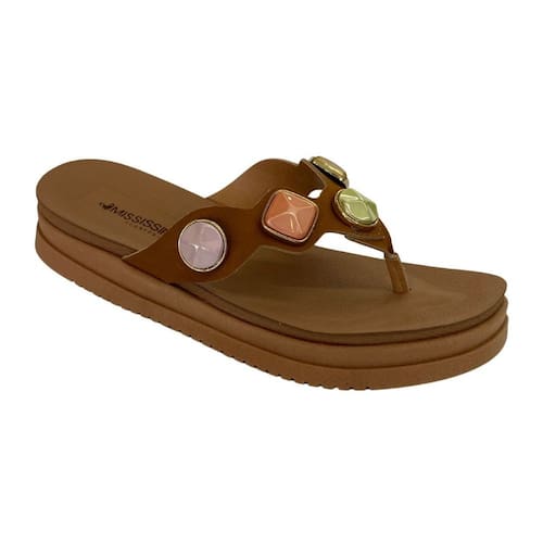 O Tamanco Mississipi MF191 é a escolha ideal para quem busca praticidade sem abrir mão da elegância nos dias mais quentes. Com design moderno e acabamento refinado, o modelo combina o conforto de um chinelo com o charme de um tamanco sofisticado. Seu solado flatform de 3,5 cm proporciona leve elevação com excelente estabilidade, ideal para o uso prolongado no dia a dia. A palmilha macia oferece sensação de conforto a cada passo, tornando esse calçado perfeito para rotinas dinâmicas e momentos de lazer. As tiras em material sintético apresentam aplicações em pedras coloridas com acabamento brilhoso e moldura metálica, garantindo um toque de requinte que eleva qualquer produção casual. O contraste entre o design clean e os detalhes decorativos valoriza os pés e adiciona personalidade ao visual. Leve, prática e estilosa, essa sandália é perfeita para compor looks descontraídos com vestidos, saias, shorts ou calças leves. Ideal para acompanhar você do passeio ao final de semana com muito estilo e conforto.