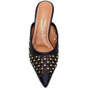 O Tamanco Mule Vizzano Apliques Salto Baixo é ideal para quem valoriza o conforto. O diferencial do modelo fica por conta do design do cabedal com apliques dourados, enquanto o bico fino sofistica o estilo.