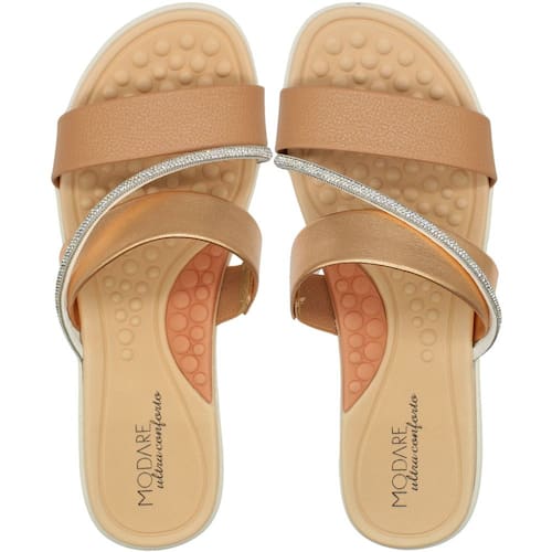 Tamanco Ortopédico Modare Ultra Conforto Tira Strass Feminino - 38 - Bege