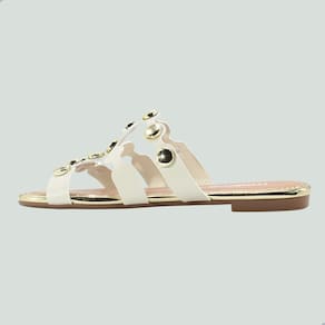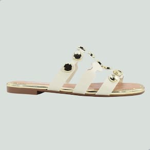 Tamanco Rasteira Feminina Moleca Napa Turim Metal Glamour Branco Off Dourado - 38 - Branco