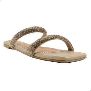 Tamanco Rasteira Feminino Vizzano Dourado Cristal Bege - 34 - Bege