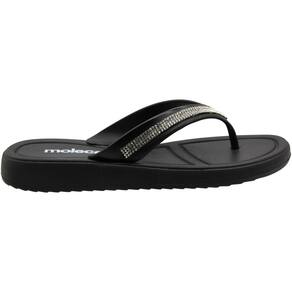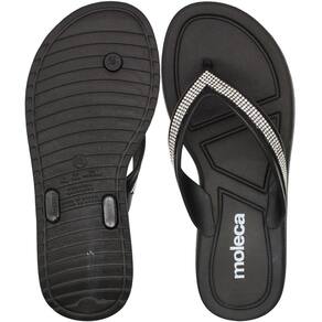 Tamanco Rasteiro Moleca Tira com Strass Feminino - 37 - Preto