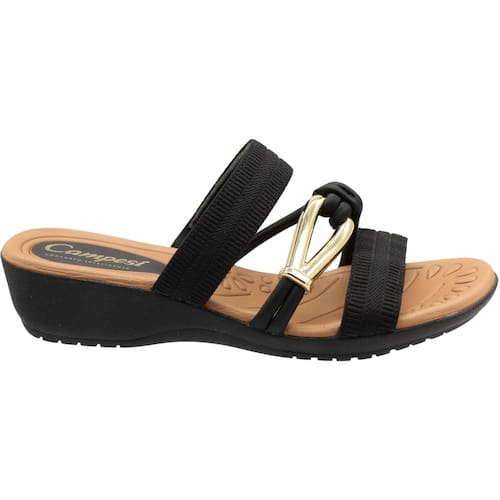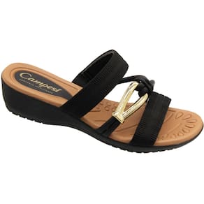 Tamanco Salto Anabela Campesí Tira Aplique Metal Feminino - 38 - Preto