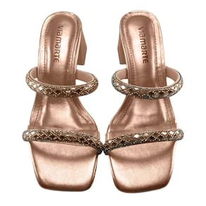 Tamanco Salto Bloco Tiras Strass Conforto Casual Via Marte - Bege - 35
