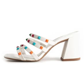 Monocolor do cabedal ao salto, o Tamanco Dakota de Salto Bloco Branco destaca seu visual minimalista e atemporal! Formada por tiras finas que envolvem o peito do pé, o modelo ainda conta com o salto bloco de 5,5 cm que garante conforto e elegância. O toque de moda fica por conta das aplicações de tachinhas coloridas nas tiras, que dão um toque de cor e alegria para seus looks!