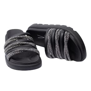 Tamanco Vizzano Feminino Tiras Entrelaçada Strass Preto 346588