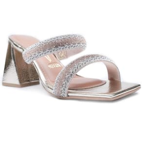 Tamanco Vizzano Strass Metalizado Salto Bloco Feminino - Dourado - 35 - Rosa