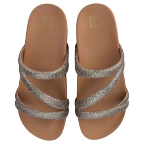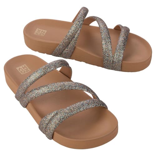 Uma Zaxy para brilhar muito! Esse slide de multi tiras fica ainda mais fashion com o glitter que enfeita todo o cabedal, tendência confirmada do momento!! A sola anatômica garante estilo e conforto para todas as ocasiões!