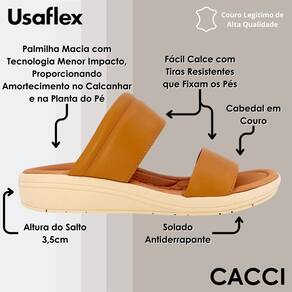 Ideal para quem não abre mão de bem-estar no dia a dia, este tamanco feminino Usaflex combina conforto e elegância em cada detalhe. Seu design com salto anabela de três centímetros e meio proporciona leve elevação sem comprometer a estabilidade, enquanto a palmilha macia conta com tecnologia de menor impacto, oferecendo amortecimento tanto no calcanhar quanto na planta dos pés.