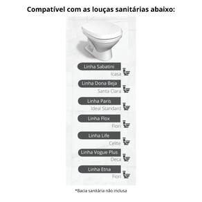 Vaso Compatível: 🚽Linha Sabatini – Fabricante Icasa 🚽 Linha Dona Beja – Fabricante Santa Clara 🚽 Linha Paris – Ideal Standard 🚽 Linha Flox – Fabricante Fiori 🚽 Linha Life – Fabricante Celite 🚽 LinhaVogue Plus – Fabricante Deca 🚽 Linha Etna – Fabricante Fiori