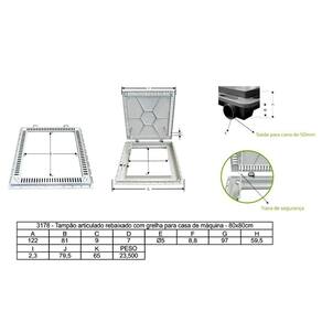 O tampão com grelha foi desenvolvido especialmente para casas de máquinas, seu diferencial é a grelha que permite a circulação de ar dentro da casa de máquina, diminuindo a umidade e aumentando a vida útil dos equipamentos (bombas, motores, filtros de piscina e outros). Possui em seu aro um sistema próprio de captação de água, que permite seu escoamento para a rede pluvial, não deixando que a água com os equipamentos. O tampão articulado possui um sistema de trava que mantém a tampa aberta, facilitando a manutenção na casa de máquinas. Ideal para casa de máquinas de grande porte, possui uma área livre que permite um melhor aproveitamento do espaço na amplitude horizontal. Sua abertura é articulada e possui travas que mantém a tampa aberta, o que garante e pde para realização de manutenções. O modelo da tampa rebaixada foi desenvolvido para o assentamento em cerâmica (piso) sendo uma ótima opção para que o ambiente fique harmonioso e discreto para sua casa de máquina. O revestimento de cerâmica deve ser colado com silicone.