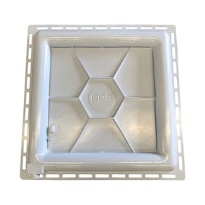 Especificações Técnicas: • Medidas externas: 80x80cm | internas: 62x62cm • Altura do rebaixo: 1,8cm | Altura total: 6,7cm • Drenagem com cano de 50mm | Escoamento: 1,2cm • Abertura de 90° com puxador embutido e sistema de ventilação • Peso aproximado: 23kg