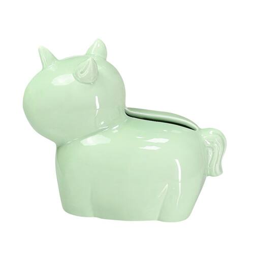Material: cerâmica Peso: 1400 g Tamanho: 25,5 x 13 x 19,5 cm Design encantador de unicórnio — apresenta uma forma de unicórnio verde pastel, adicionando um toque caprichoso e atraente a qualquer espaço doméstico ou de escritório. Material cerâmico premium — Feito de cerâmica de alta qualidade com acabamento brilhante para maior durabilidade e aparência elegante. Decoração multiuso — funciona como um prático dispensador de lenços e uma peça decorativa para salas de estar, quartos, escritórios ou mesas de jantar. Abertura superior conveniente — serve para a maioria dos lenços padrão e permite um reabastecimento rápido e fácil sem complicações. Tamanho e estabilidade ideais — Medindo 25,5 × 13 × 19,5 cm e pesando 1400 g, garantindo uma base estável que evita tombamentos durante o uso.